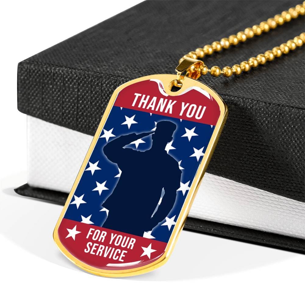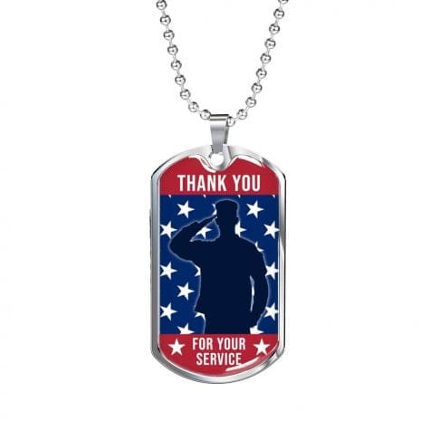 US Military Veteran Thank You For Your Service Luxury Dog Tag with Military Chain